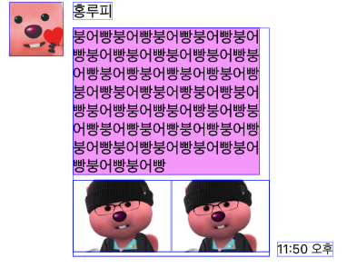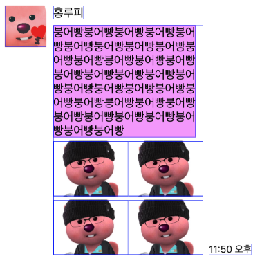 프로필 영역과 닉네임은 고정으로 값이 있는 영역이고 채팅은 케이스가 세개임